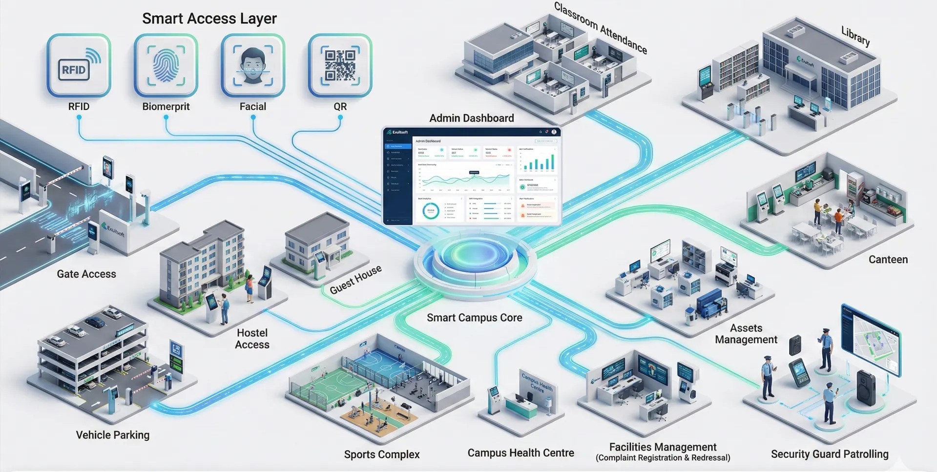 Exultsoft, System Integrators building software and hardware solutions with in house software development team to provide complete end to end customized solutions. Our strength is in providing one coordinated system by linking software and hardware products, by joining databases and data sources together to provide new valuable information and create new products and solutions. Our main strength is to address pain points of clients by bring in new innovative technologies and we are in this process of designing, development, integrating, testing, deploying and maintaining the latest and innovative technology-based solutions from 2005. Our solutions include Access Control, Time & Attendance, Visitor Management, Canteen Management, Parking management, Video Management, Billing, Tracking, and total Campus solutions integrated with third party software’s through API calls or WEB service. Over the years we have acquired many prestigious clients and provided the best need bases solutions.